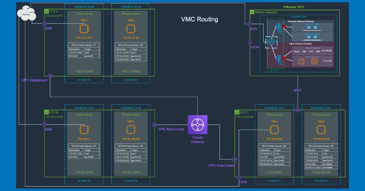 I’ve recently received questions around VMC on AWS from customers and colleagues, specifically around how VMC workloads communicate with AWS workloads for both the connected and non-connected VPCs. So I decided to put together a video that provides a practical look at establishing connectivity. The video can be found below and covers the following:
